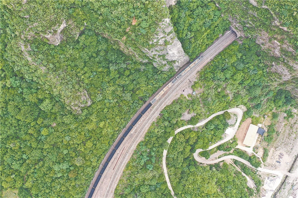6月5日是第53个“世界环境日”,今年我国的环境日主题是“全面推进美丽中国建设”。近年来,中国铁路郑州局集团有限公司充分发挥能源运输通道优势,大力推动煤炭“公转铁”运输,助力打好污染防治攻坚战和打赢蓝天保卫战,为建设美丽中国贡献力量。图为5月29日,一列满载电煤的货物列车行驶在“晋煤外运”大通道太焦线上。王 玮 摄