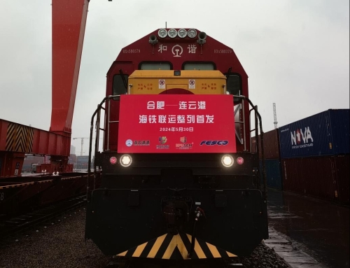 5月30日,首趟“合肥—连云港”海铁联运整列运载50个集装箱(100台汽车),从合肥北铁路货场发运,于5月31日抵达连云港港,之后将装船发运至俄罗斯。