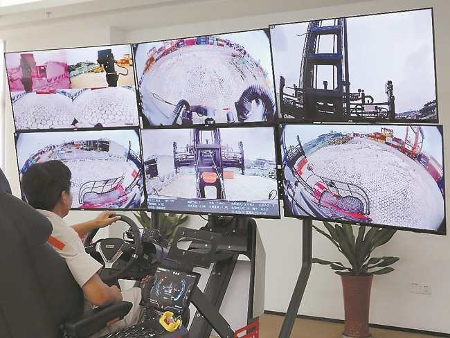 据介绍,该台远控堆高机配备多个全景摄像头和激光雷达扫描系统,让操作人员可以更加安全地感知作业环境。同时,融合5G通信技术、智能感应系统等技术,实现对堆高机的数据传输稳定、远程精确控制和运行状态监控。