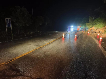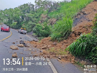 在将现场处理完毕后,路巡人员刚返回,又接到乡镇险情通报,称G354线木山坳附近路段出现边坡塌方情况。顾不得休息,值班人员又赶往现场,发现因持续降雨,G354线K627+400右侧边坡12点左右出现塌方,泥土和碎石侵占路面,严重影响到了交通安全出行。现场人员按照汛期公路安全处置要求进行了报告和调度,采用“人工+机械”的方式,将路面的落石、泥土、枝干等清理干净,又划定出安全区域摆放了安全锥拉上警戒线合理对隐患点位进行隔离封闭,并对边坡上明显的松软处进行了清理,谨防再次滑坡塌方。经过紧急处置,现场被清理完毕,公路交通恢复畅通。