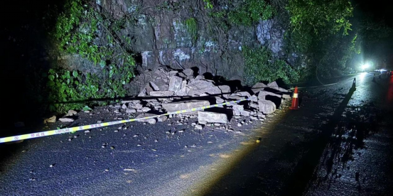 吉首公路部门连夜处理路面落石及时消除国道安全隐患