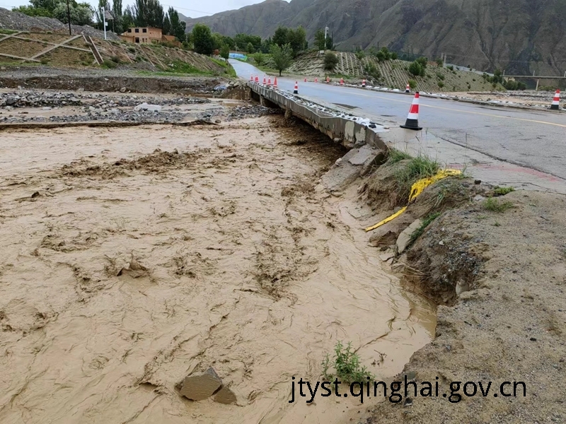 6月20日中午,湟源公路总段养护职工在路况巡查中发现国道310线拉西瓦中桥河道受降雨影响,水位迅速上涨,桥台被洪水冲刷,存在路基被洪水冲毁的风险隐患。