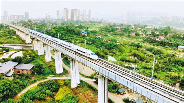 6月21日8时,随着57701次检测车从重庆西站驶出,标志着新建重庆至昆明高速铁路重庆西至宜宾东段(以下简称渝昆高铁渝宜段)正式启动联调联试,年内有望建成通车。