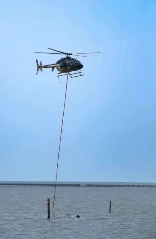 在现场指挥的调配下,无人机机组第一时间展开搜寻工作。发现落水者所在水域水位太浅,巡逻艇无法靠近后,执法人员当即派出水上救援机器人开展救援。今年首次应用直升机、抗风7级无人机、水上救援机器人、新型清污船等新装备新技术,形成水空立体救援。