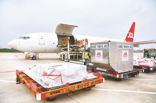 6月27日,由中国外运运营、京东航空执飞的“南通—仁川”国际全货机航线在南通机场成功首航,标志着中国外运助力南通打造国际航空货运枢纽迈出重要一步。尤炼 摄 (视觉江苏网供图)