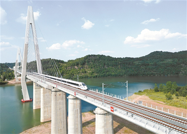 连日来,中国铁路成都局集团有限公司调配精干力量,稳步推进巴南高铁运行试验,为线路按期开通运营打好基础。图为近日,一趟试验列车行驶通过巴南高铁饶家墙特大桥。秦浩文 摄