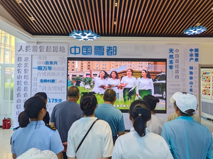 进入雪都社区,映入眼帘的便是以“人类滑雪起源地”“中国雪都”为主题,以蓝、白为主色调的电视墙和古老毛皮滑板体验场,电视墙面写满了与主题相关的热搜名词,电视播放的是“人类滑雪起源地”“中国雪都”相关介绍。社区还划分了工作区、矛盾纠纷调解区、快递代收区、本地特色饰品购物区、学习用具购物区,配备了儿童小型游乐场、成人按摩椅、书画桌、麻将桌等,提供儿童“代管教育”服务、物业24小时服务等。社区办公楼旁是寻味雪都便民食堂,食堂内干净卫生,饭菜一份15元,70岁以上老人10元一份,味道可口。党员们吃着美味的午饭,想着“处处为群众着想,事事为群众考虑”的社区,为辖区的居民感到高兴,急群众之所急、想群众之所想、解群众之所需,让群众感受到“家”的温暖,正是人民公仆应该做的事情。