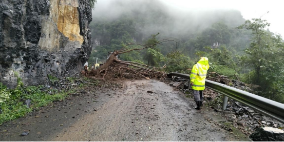 在省道S246线铜柱溪路段清理了边坡塌方的落石和树木
