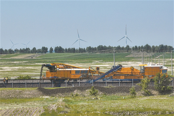 在平齐线病害整治工作中,沈阳工务机械段细化施工组织,优化机械组合,强化曲线、桥梁等关键地段作业重点卡控,确保施工安全、有序、高效开展。图为6月28日,该段大型清筛机在平齐线黑水站至通榆站区间进行机械化清筛作业。陈 明 摄