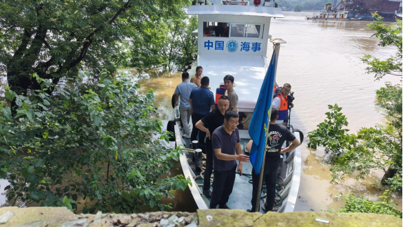 鉴于水流紊乱,夜间操作存在安全隐患,救援人员当即用船舶缆绳将失控船舶与湘海巡06032绑定,进行临时护泊,待天色明朗后再进一步处置。