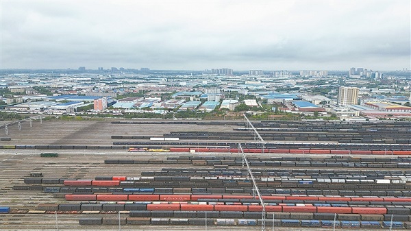 入汛以来,针对多地大面积降雨造成迂回列车增多、站内车流积压的实际,襄阳北站发挥编组站车种多、去向广、作业灵活的优势,通过合理分配车流、多编满吨满长和远程技术直达列车等方式,最大限度挖掘运输潜力,全力确保枢纽高效畅通。图为近日,该站编组场密集的车列。曹黎波 摄