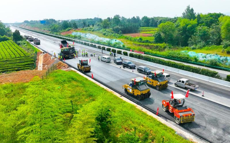 建设中的G50沪渝高速广德至宣城段,“筑路人”正在进行沥青摊铺。安徽交控集团供图