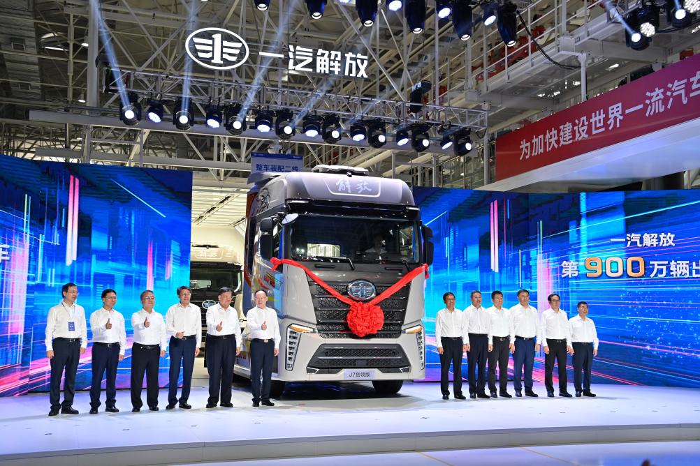 图为中国一汽第6000万辆汽车暨第900万辆解放牌卡车出车活动现场。新华社记者 颜麟蕴 摄