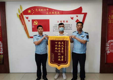“要不是你们交通执法人员把我从湖里面救上来,我今天就不可能站在这里了。”7月9日上午,黄先生来到岳阳市交通运输综合行政执法支队,将一面绣有“见义勇为,冒着湍急的长江水流下水救人”的锦旗赠与执法人员,对执法人员在危难中紧急救人表示衷心感谢。