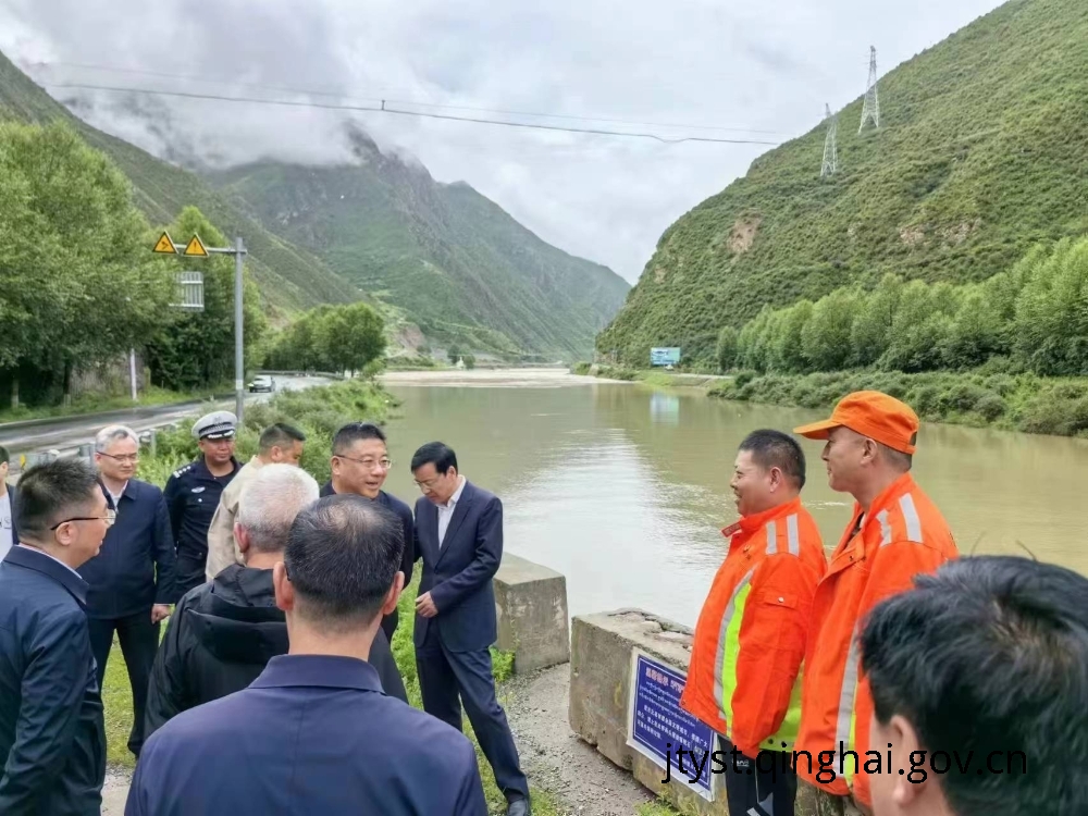 7月18日上午,玉树州州委书记蔡成勇一行深入玉树公路总段结古公路段辖养的G214线通天河临河路段养护保通现场,实地督导检查公路防汛工作。