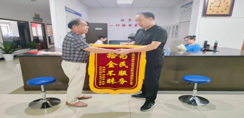 7月17日上午,刘桂华老人同儿子一起将一面“拾金不昧为民服务”的锦旗送到了益阳市丽华出租车公司,对该公司拾金不昧的驾驶员丁金华给予了高度赞扬。