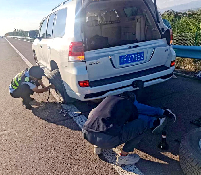伊宁执法大队:车辆爆胎车主陷困境 热心相助执法人员显担当