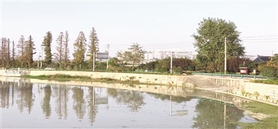 270多年前筑的石堤处的运河,现在人们称之为北角楼大湾,大湾河道岸边树木葱绿,百花争妍,河里有荷藕、菖蒲、芦柴及其他水生植物,有停在港湾里的小渔船和布在河中的小渔网,显示着原生态的气息,成为人们悠闲好地方。