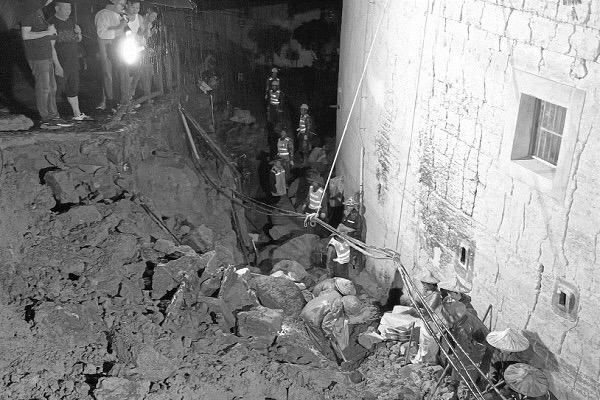 南靖公路分中心紧急支援土楼景区塌方抢险。(邓明玉 摄)