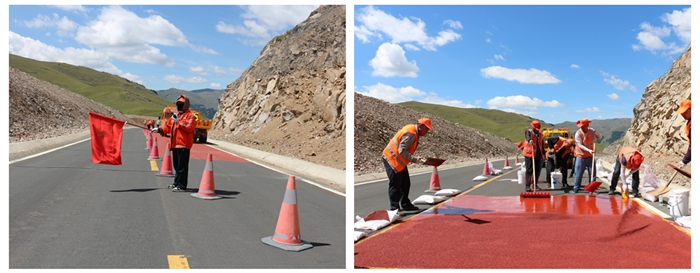 此次彩色铺装工艺在分局G219干线公路上的应用,丰富了公路的彩色,提高了路面的防滑能力,既是一道靓丽的风景线,更是一道守护人民群众安全的生命线。