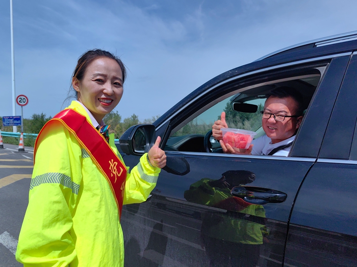 “师傅,吃块西瓜,天热注意防暑降温,安全驾驶。”近期,各收费站在广场设立便民服务台,为过往司乘人员免费提供矿泉水、西瓜、绿豆汤、菊花茶等防暑降温“凉”方。工作人员利用驾驶员在领卡缴费的等待时间,为他们送上打包好的西瓜和矿泉水,以不下车、不等待的方式,关怀奔波在路上的司乘人员,为他们送去“清凉”。针对夏季高温天气容易出现人员中暑、车辆爆胎等现象,便民服务台备齐“小药箱”和简易修车工具,确保能及时为司乘人员清热解暑。在做好便民服务的同时,为司乘提供道路指南、ETC使用咨询等延伸服务,做到有求必应、有问必答,为司乘人员快速通行保驾护航。这些看似不起眼的细节温暖着司乘人员,并深受好评。“冬日送暖,夏日送凉,经常上高速能碰到你们开展活动,服务到位又贴心,为你们点赞!”一位司乘接过西瓜向工作人员竖起了大拇指。