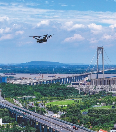 江苏南京市公路集团巡检无人机正在对栖霞山大桥南接线高速路况进行巡检。