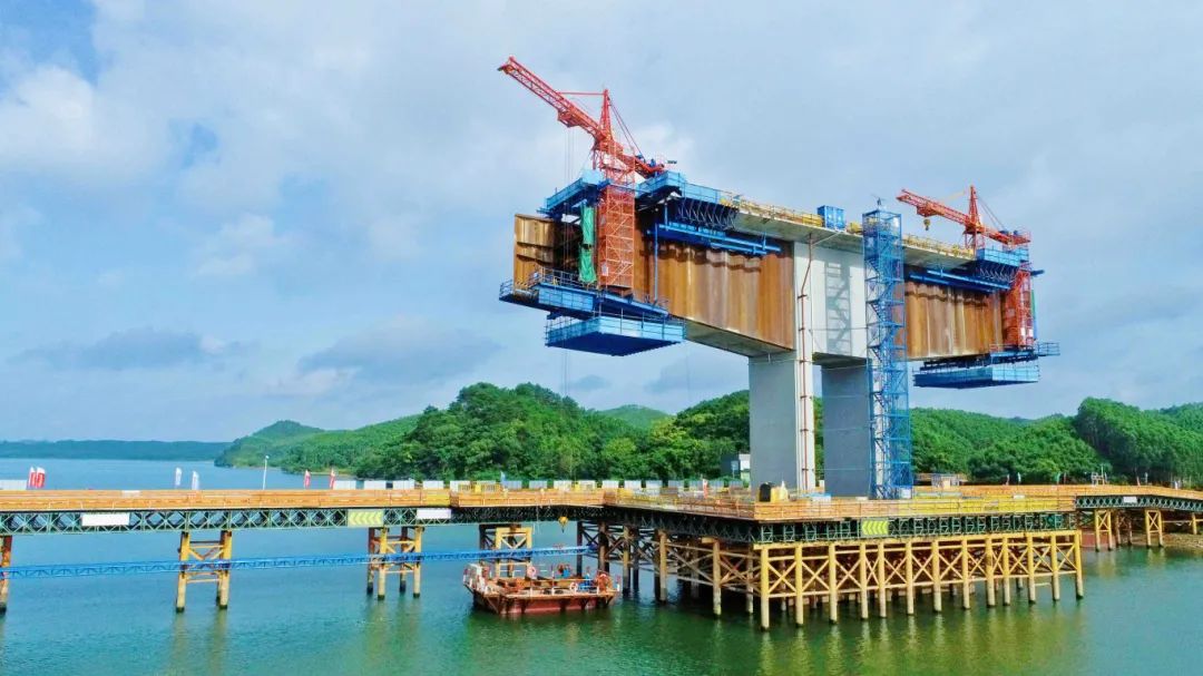 基于BDS的波形钢腹板智能快速运输安装技术在飞龙大桥上构施工中成功应用。(陈芊艺 摄)
