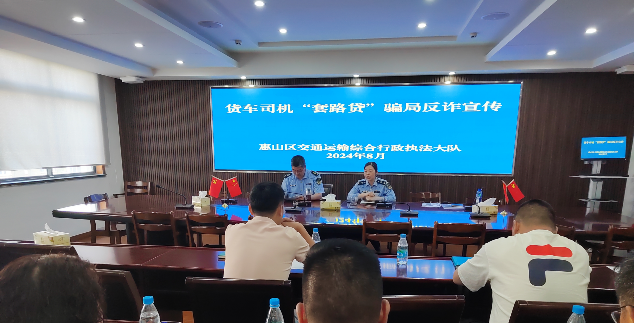 “套路运”“套路贷”等骗局瞄准货车司机,多人被骗,近日,无锡市惠山区交通运输综合行政执法大队针对货车司机“套路运”骗局,组织召开“反诈”宣传会议,开展线上线下“反诈”宣传活动,帮助货车司机群体防范此类骗局,进一步维护广大货车司机群体合法权益。