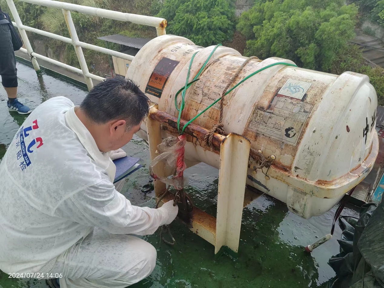 得知这一情形,南京市交通运输局综合执法局五支队立刻启动2024年度第十一批营运船舶集中检验。7月22日,验船师小组来到福州平潭进行集中检验。受到高温和台风的影响,海上的天气变幻多端,船舶甲板温度超过50℃,机舱内闷热潮湿。在这种酷热恶劣的环境下,验船师抵抗烈日和倾盆暴雨的双重“烤”验,验迎难而上,战高温,抗台风,克服种种困难,保障船舶安全归港。
