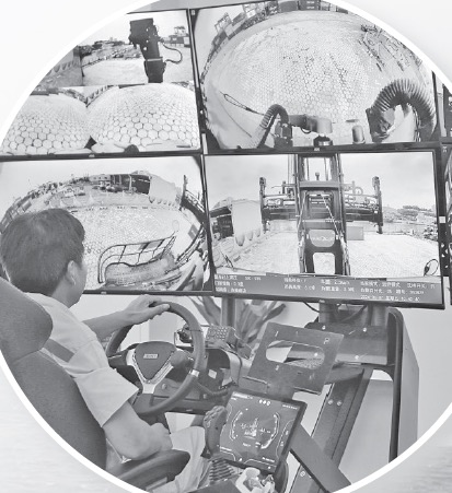 厦门国际航运科创中心内,操作人员使用远程控制堆高机开展装卸作业。(厦门港务集团 供图)