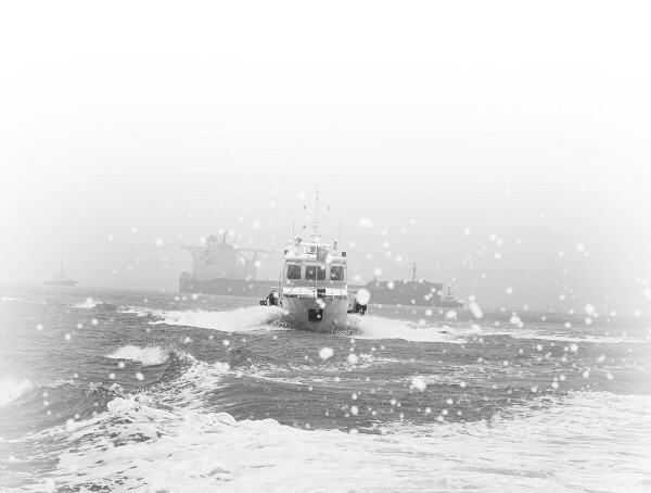 海巡艇在湄洲湾巡航。(王劼睿 摄)
