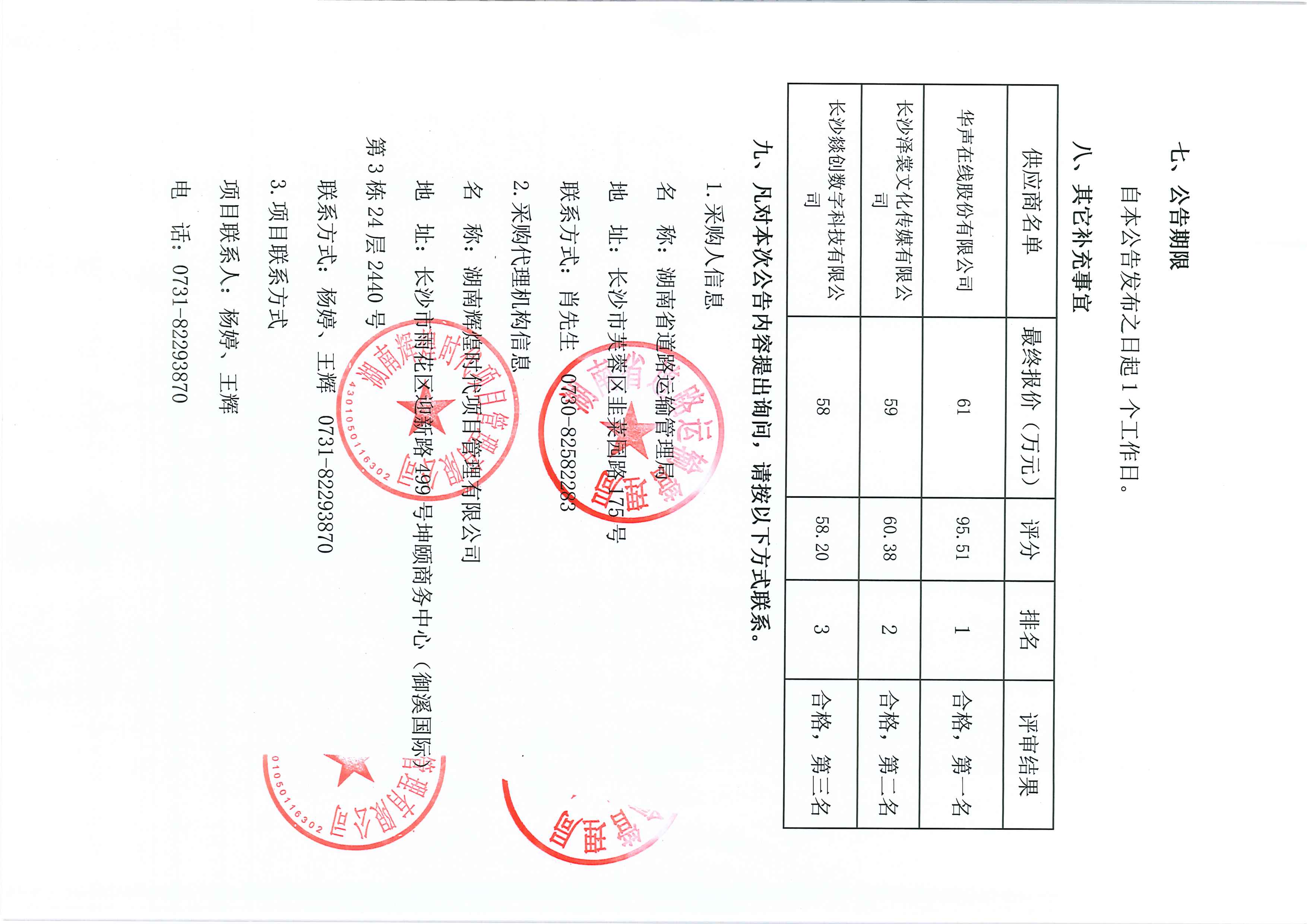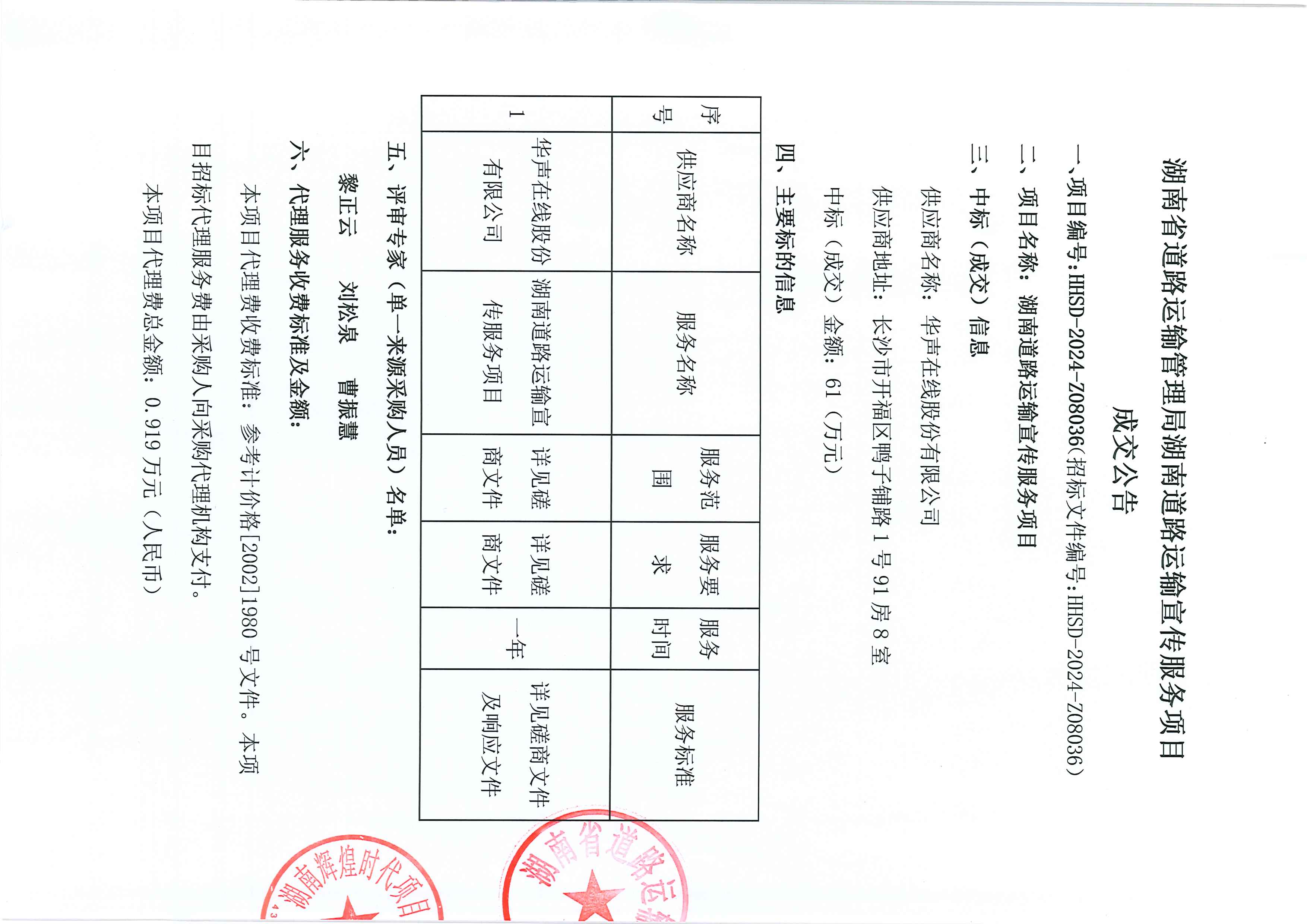 湖南省道路运输管理局湖南道路运输宣传服务项目成交公告
