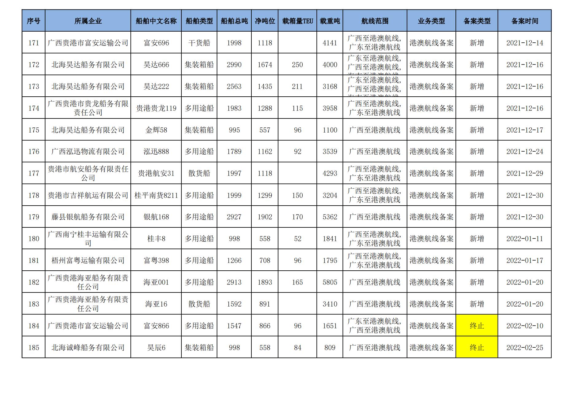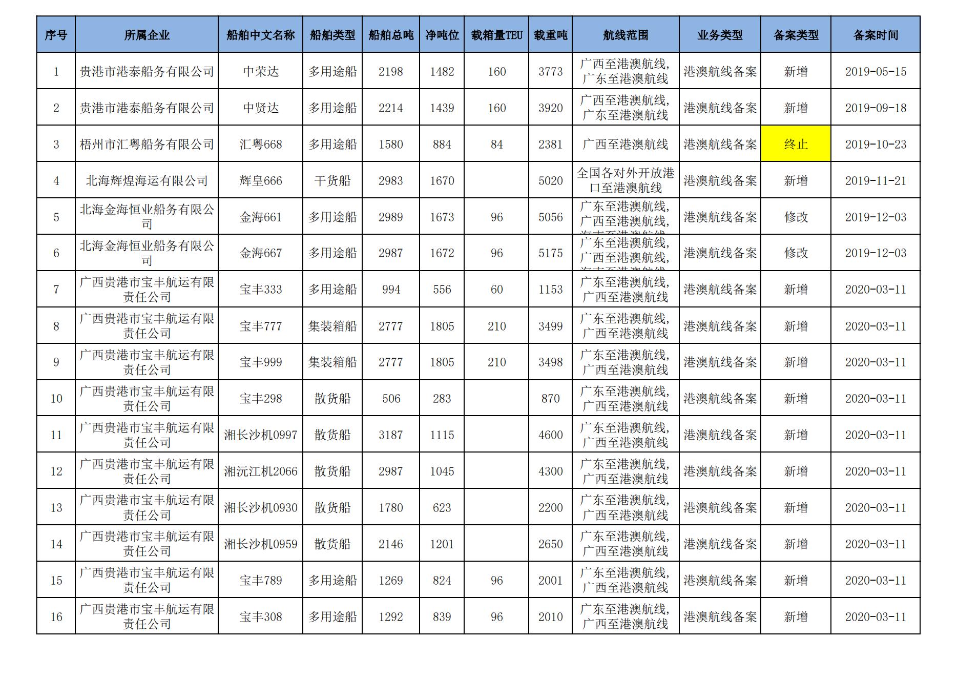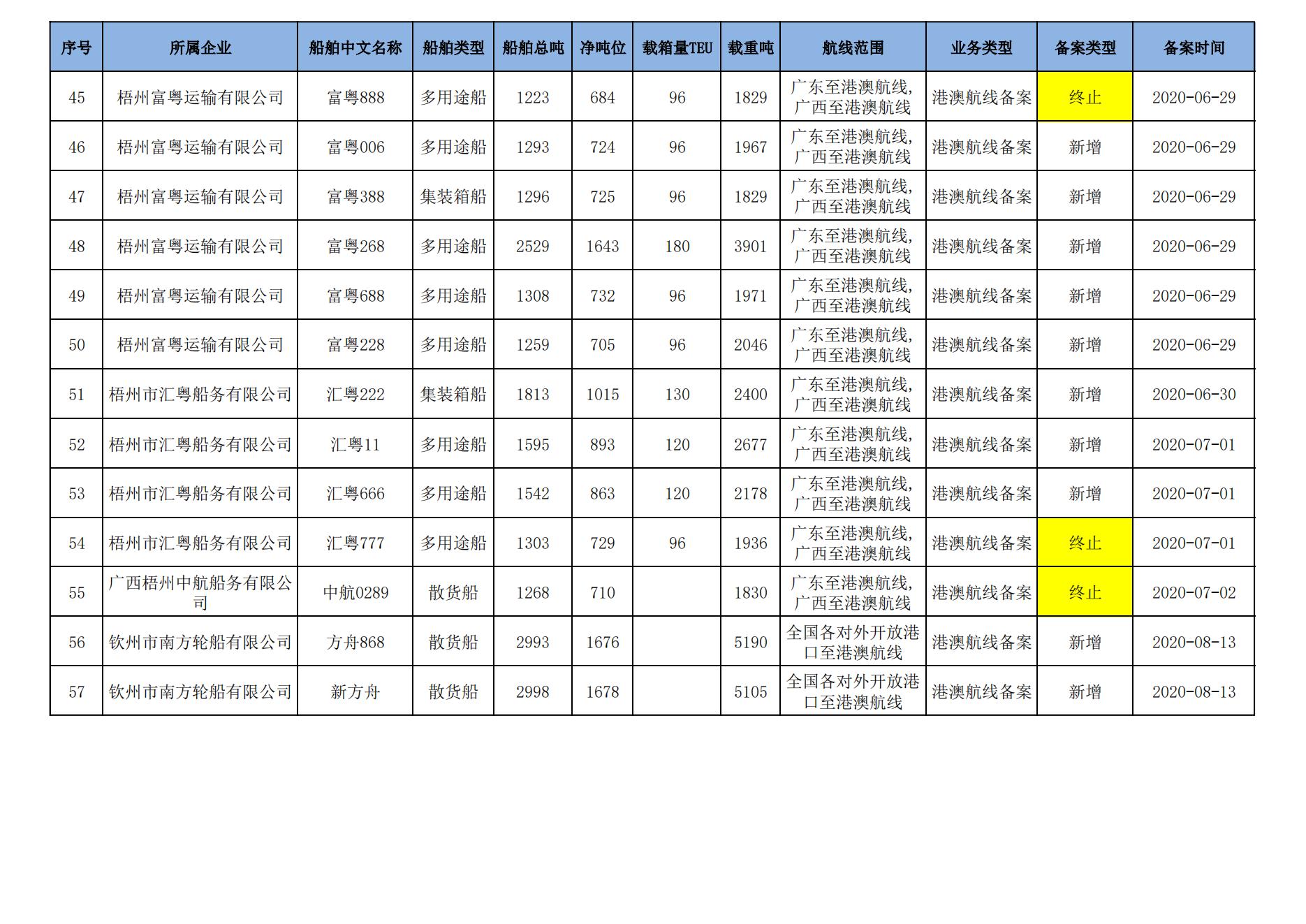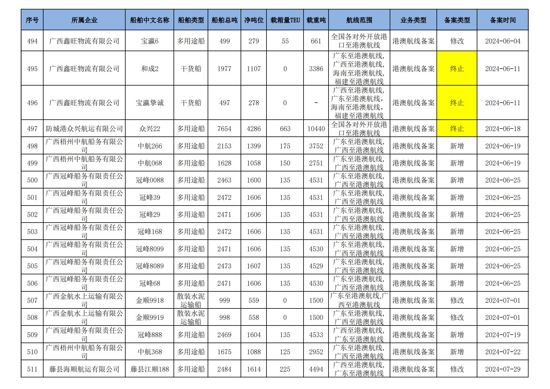 截至2024年8月11日在交通运输部水路运输建设综合管理信息系统完成备案的港澳航线水路运输船舶