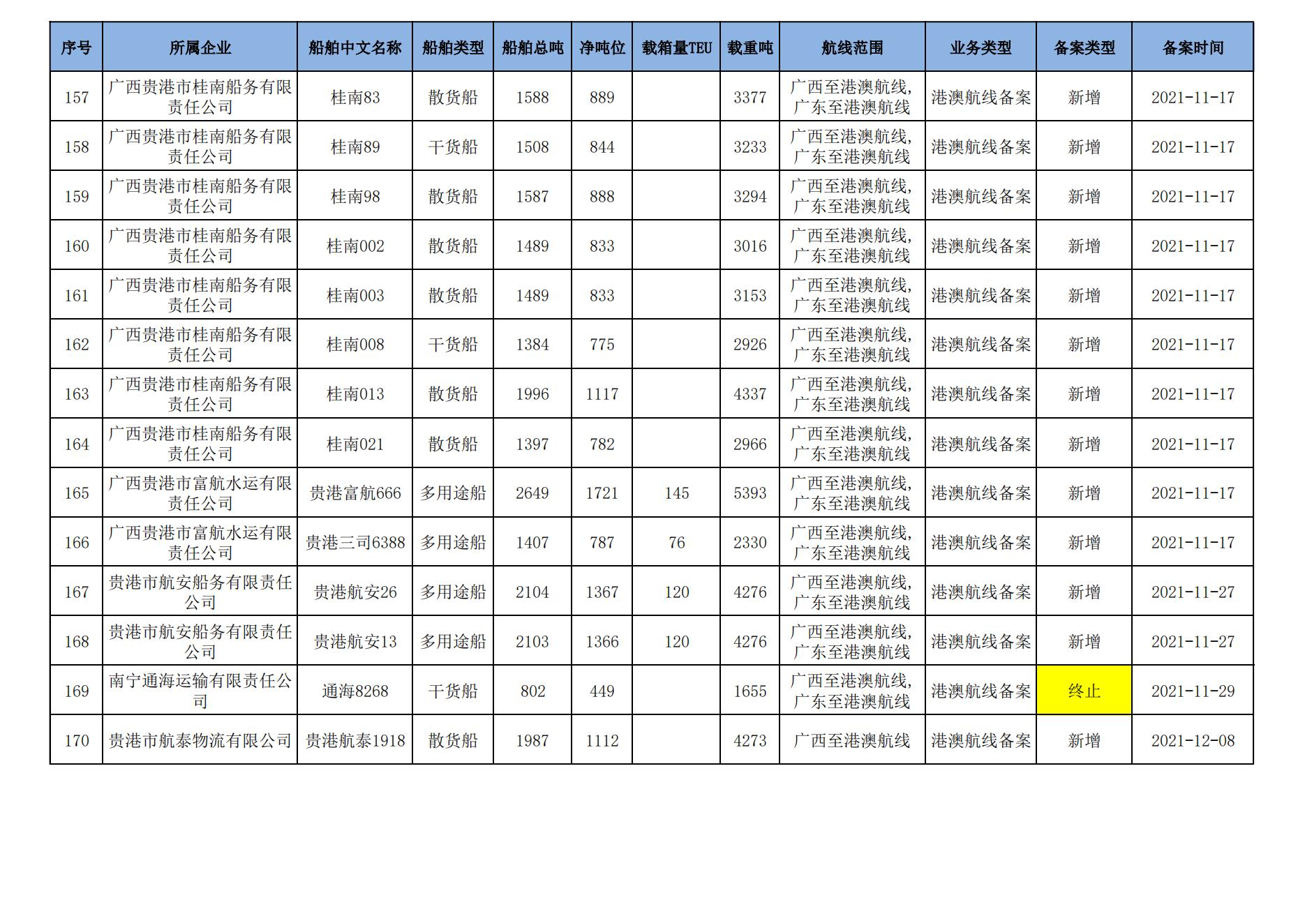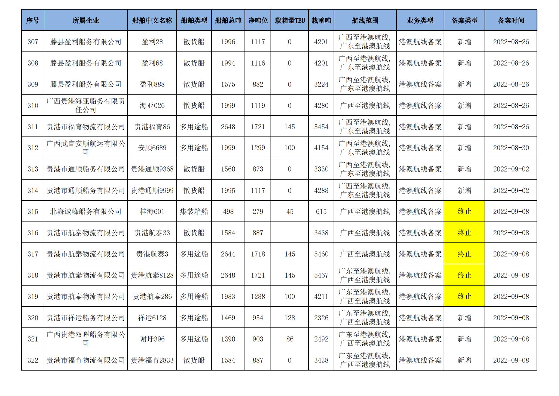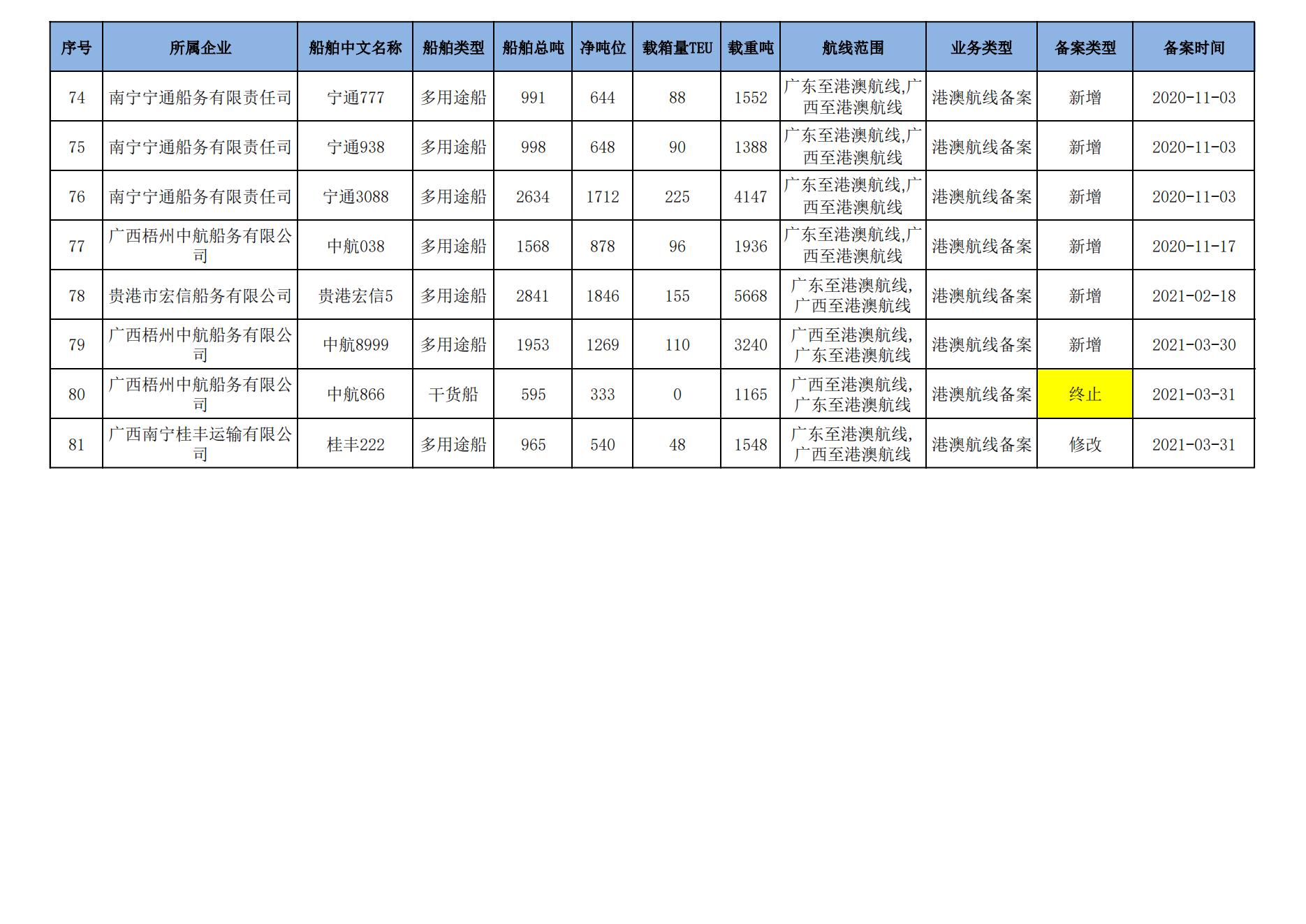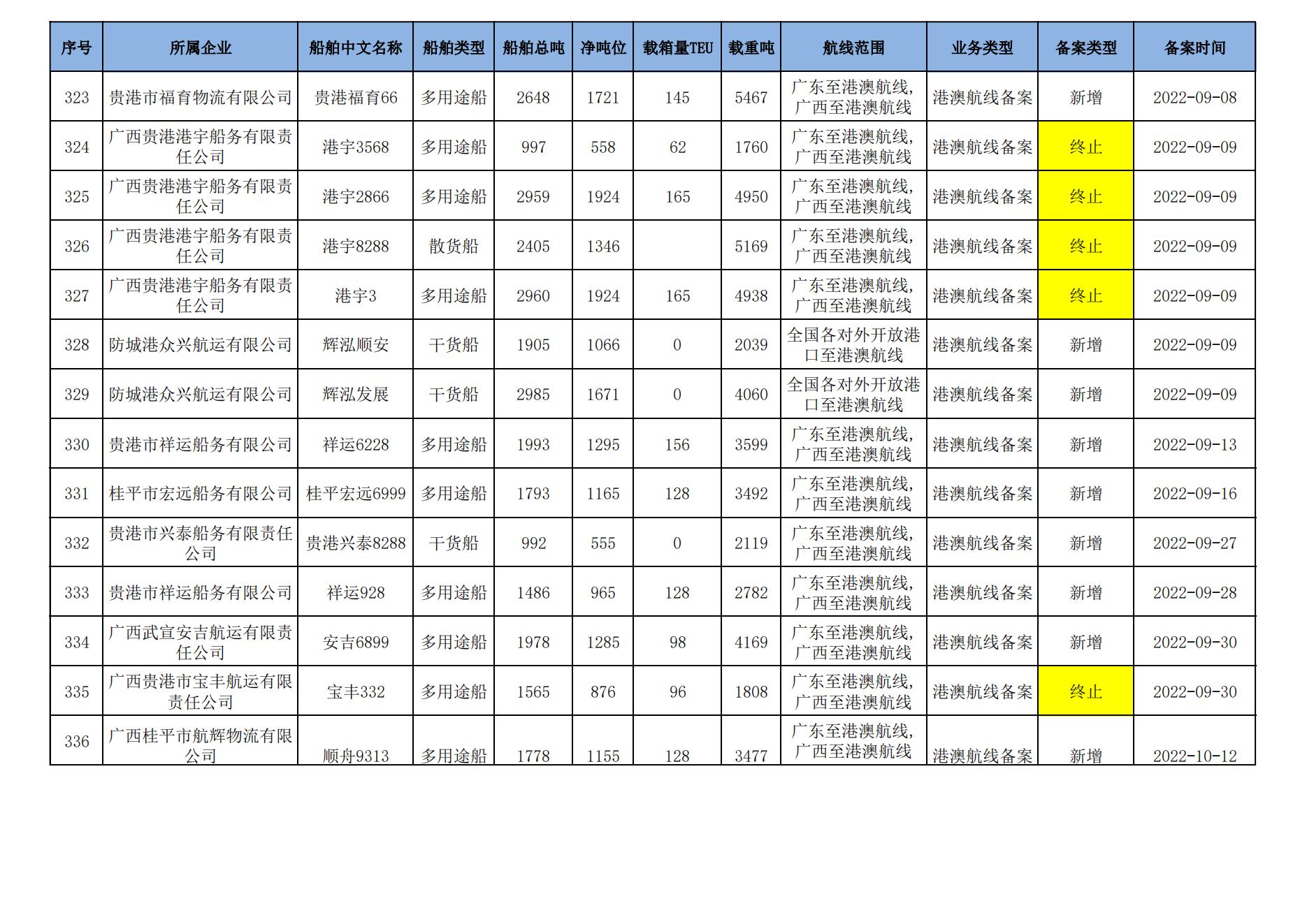 截至2024年8月11日在交通运输部水路运输建设综合管理信息系统完成备案的港澳航线水路运输船舶