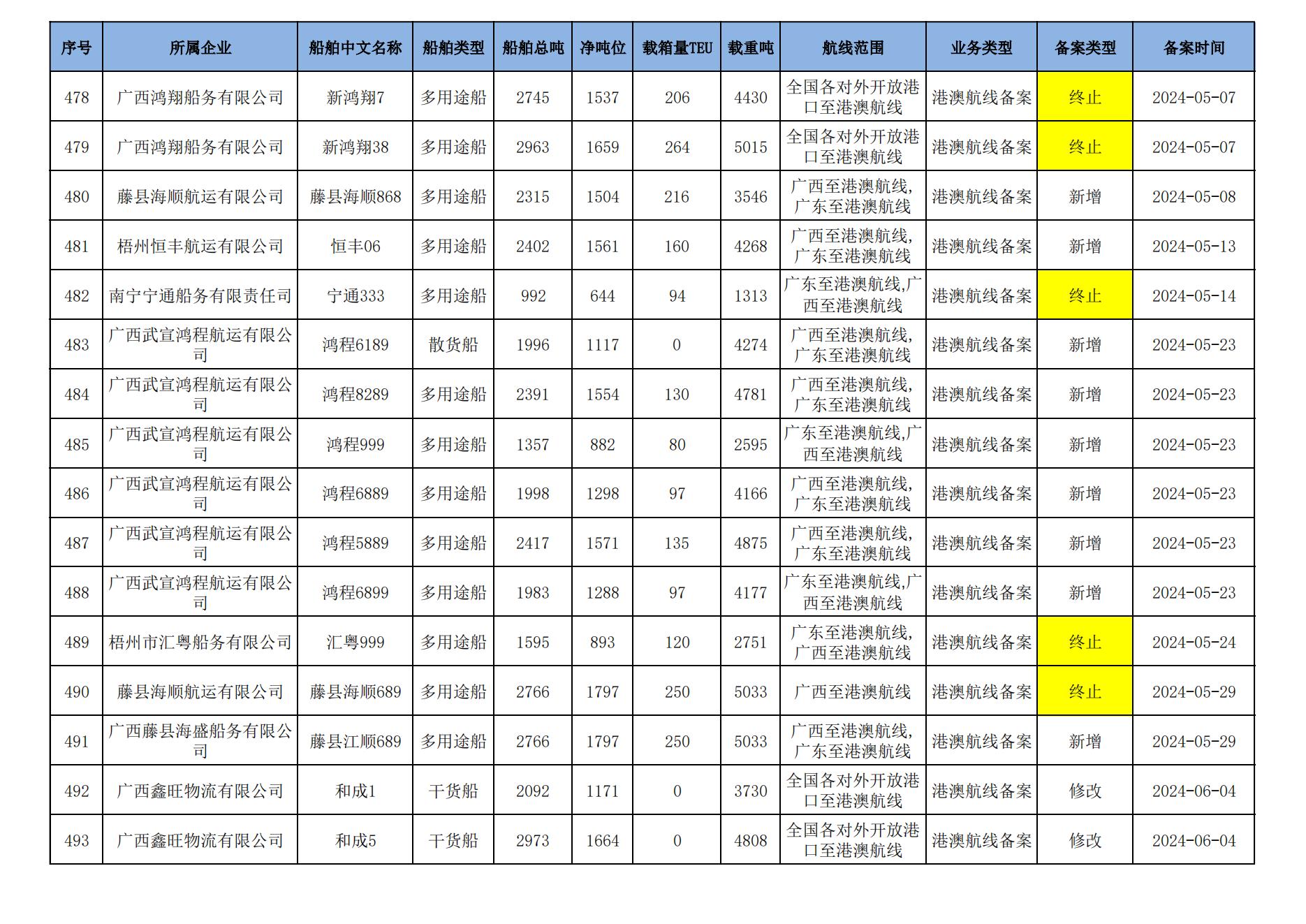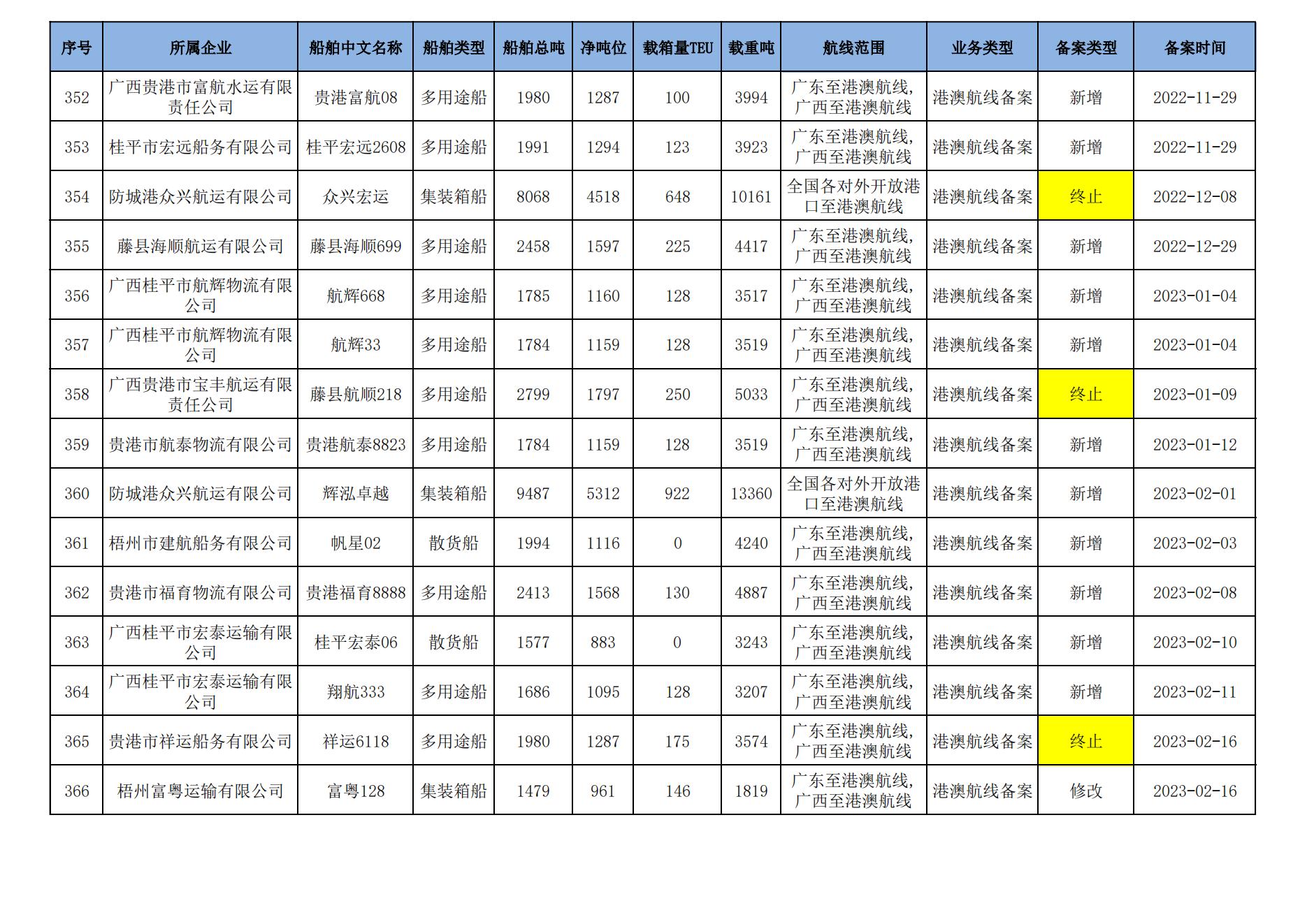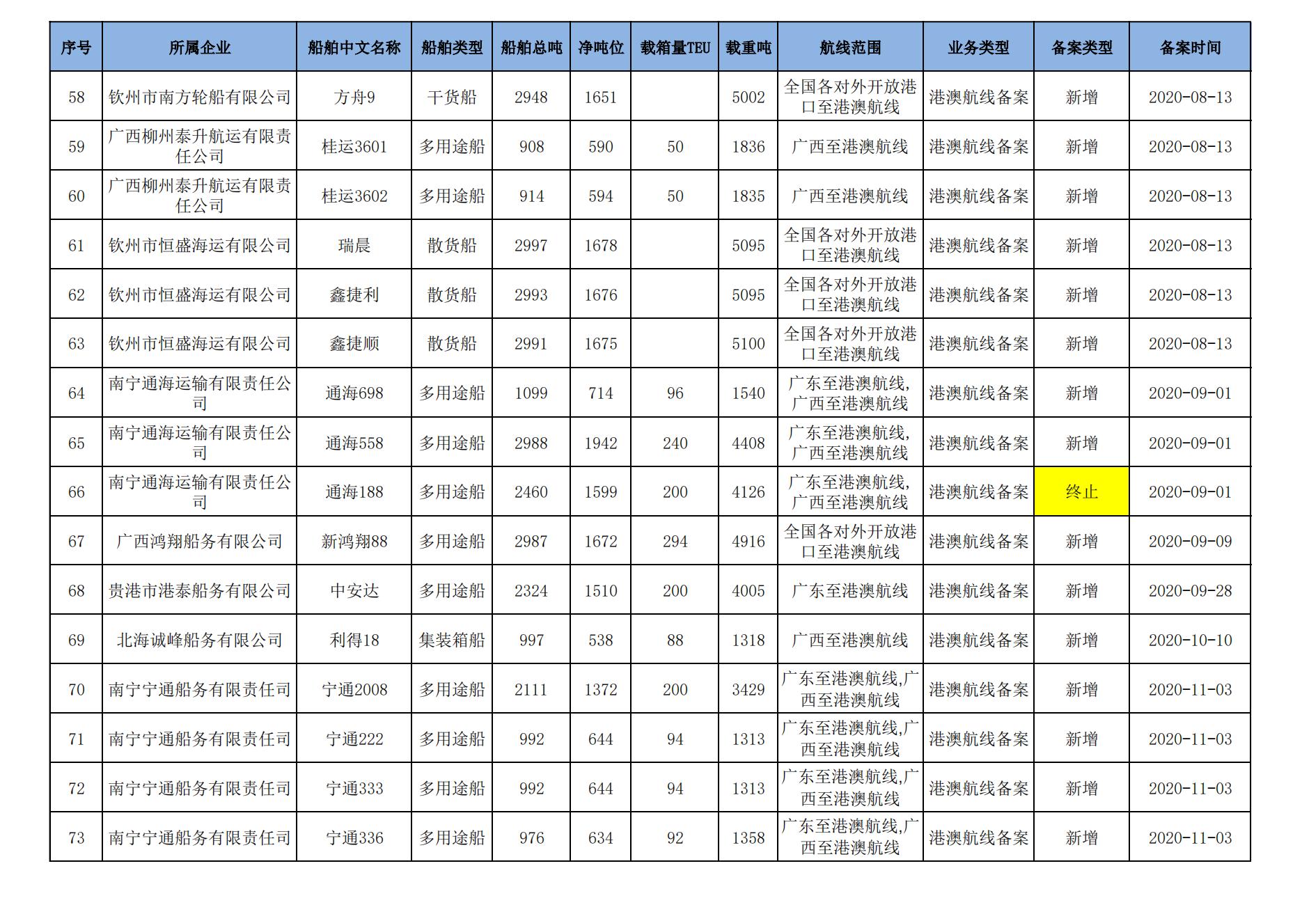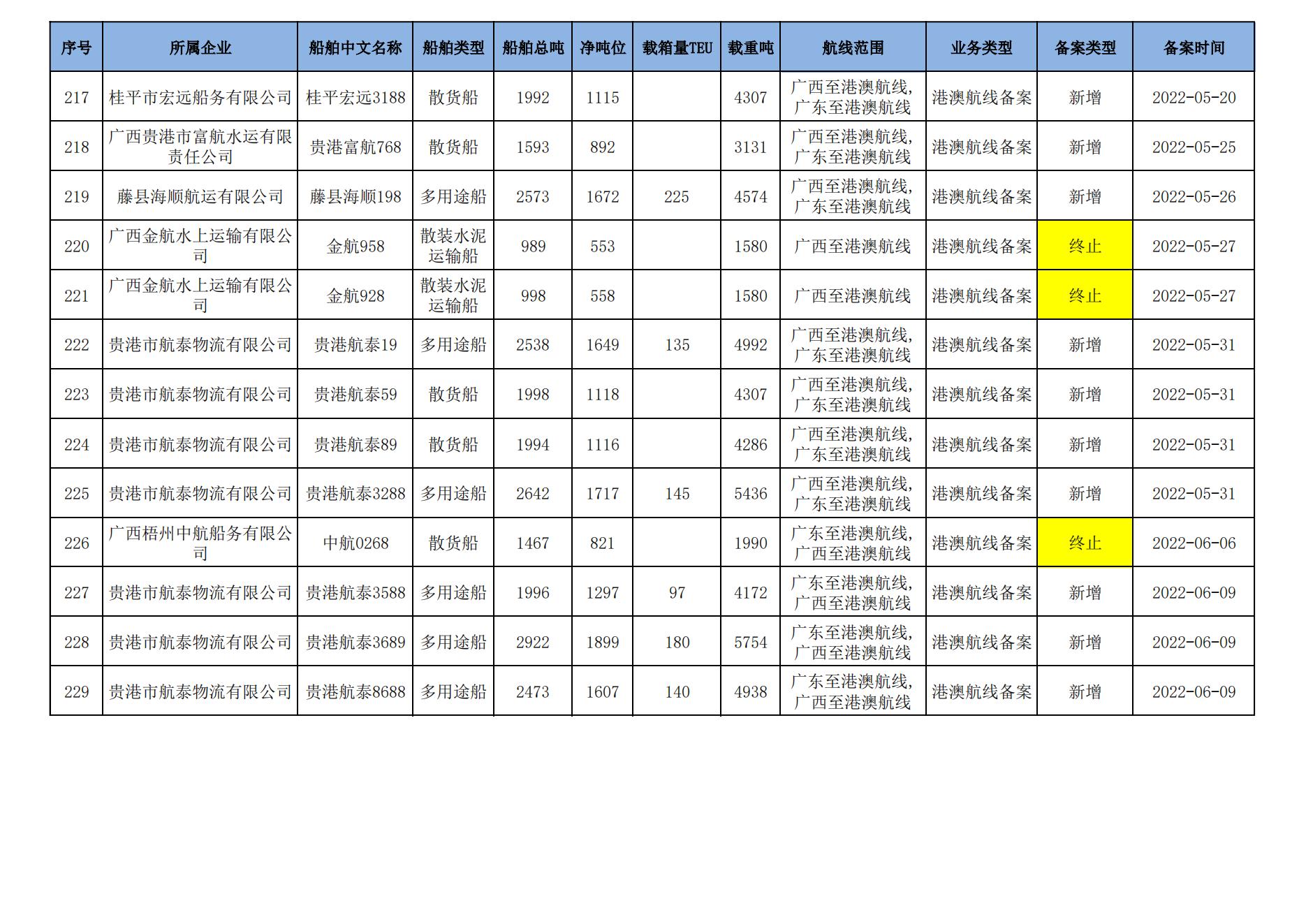 截至2024年8月11日在交通运输部水路运输建设综合管理信息系统完成备案的港澳航线水路运输船舶