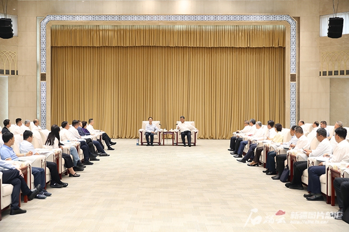 石榴云/新疆日报讯(记者 王兴瑞报道)自治区党委书记马兴瑞、自治区主席艾尔肯·吐尼亚孜8月13日在乌鲁木齐会见了来疆考察交流的“北京网络企业红色故土新疆行”代表团一行。