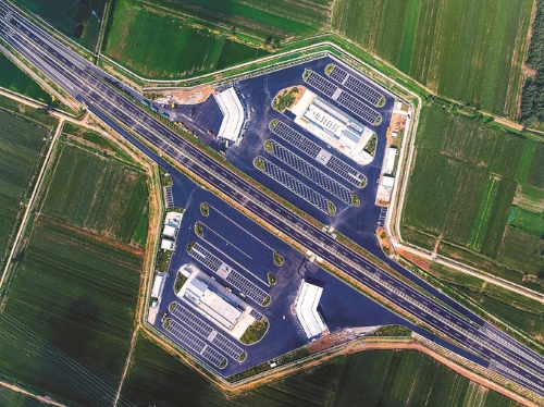 8月18日,在盐洛高速公路宿迁至泗洪段现场,建设者正开足马力进行最后的收尾施工,向年内通车目标全力冲刺。 贺敬华 摄 (视觉江苏网供图)