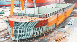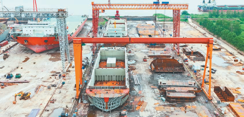 8月21日,连云港市灌南临港产业片区一家船舶修造厂,工人正在加紧进行船舶修造施工。近年来,连云港市船舶产业重点推动智能制造装备、绿色制造装备在船舶制造业的推广应用,以高技术高附加值船舶制造为突破转型方向,进一步推动船舶制造业向大型化、高端化、智能化、绿色化方向转型发展。今年上半年,连云港市船舶企业实现造船完工99艘23.6万载重吨,同比增长83%;在建船舶97艘36.4万载重吨,同比增长116%,船舶修造行业呈高速增长态势。
