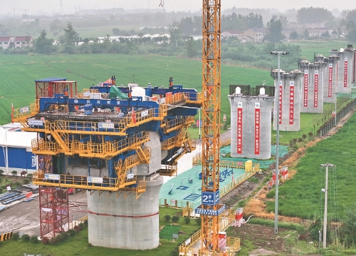 【新华日报】宁淮城际铁路六合至南京双线特大桥跨黄塘河连续梁建造用上智慧造桥机