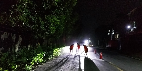 花垣县:夜间处置油污路面快速消除道路安全隐患