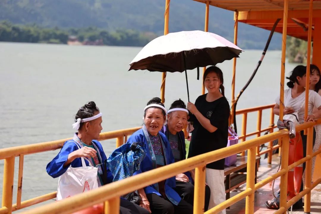“三江口生态旅游区(永兴洲)是国家AAAA级旅游景区,景区不仅通过土地租金、门票分红、劳动就业等形式联农带农惠农,还通过渡运收费给村民分红,帮助村民增收致富。”三江口生态旅游区经理廖娟说道。三江口生态旅游区位于三江侗族自治县老堡乡、良口乡境内,四面环水,景色宜人,而游客通往永兴洲的唯一途径便是渡运。为促进交旅融合发展,三江侗族自治县交通运输局在三江口新设置西洲岛码头,并新增一艘80客位的仿古渡船,不断满足当地水上旅游渡运需求,带动集体经济和当地群众增收。
