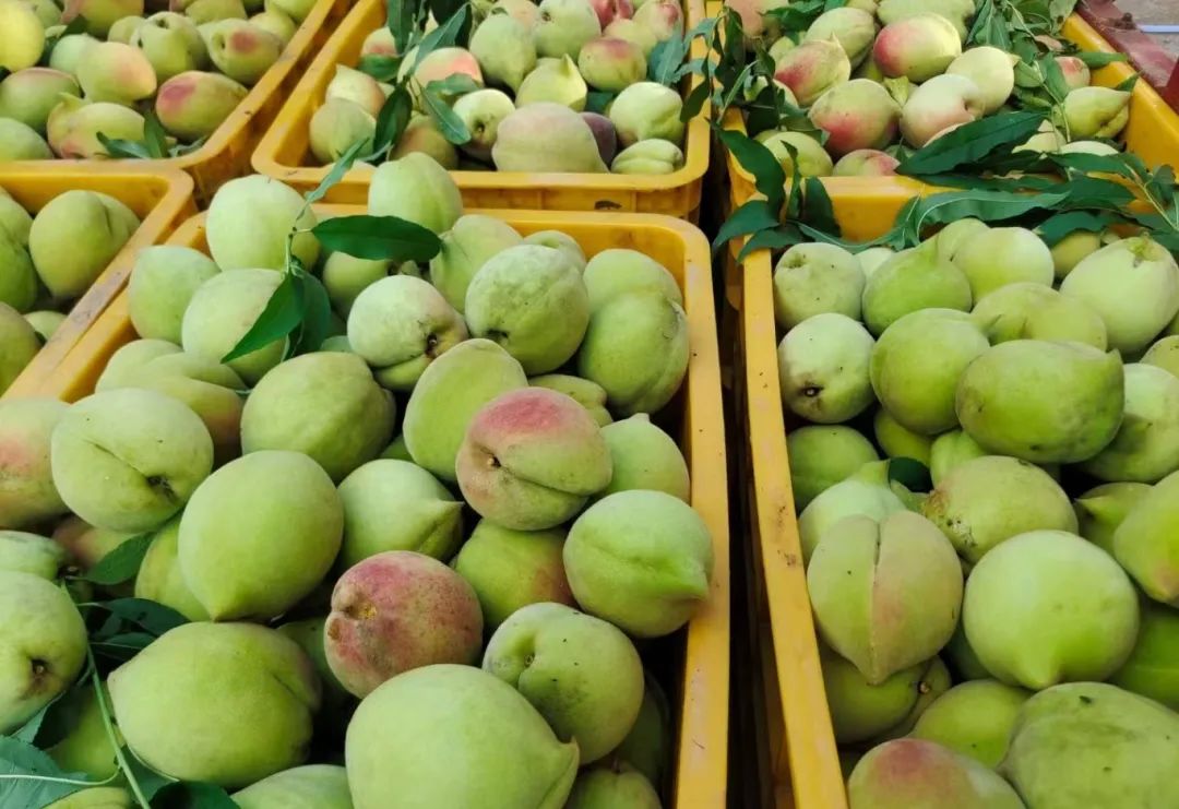 桂江江畔,阳光下,一大片桃林挂着硕果。