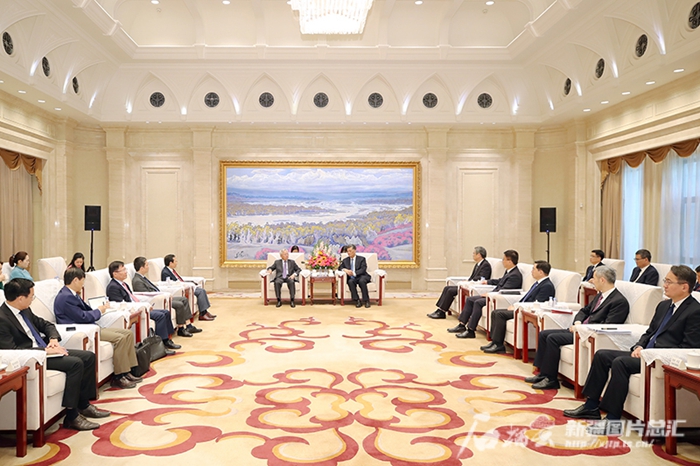 8月21日,自治区党委书记马兴瑞在乌鲁木齐会见来新疆考察的越共革新40年总结指导委员会代表团一行。石榴云/新疆日报记者 崔志坚摄