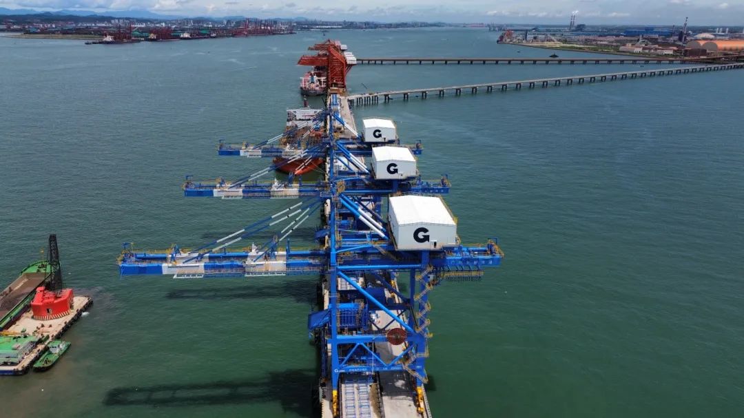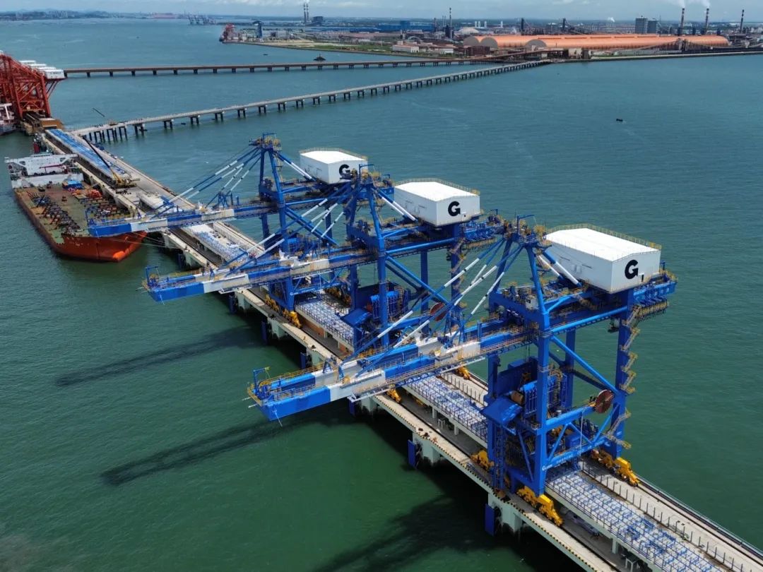 北部湾港最大卸船机首批顺利抵港安装完成。(防城港赤沙码头有限公司 供图)