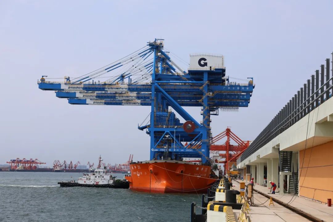 北部湾港最大卸船机首批顺利抵港靠泊安装。(防城港赤沙码头有限公司 供图)