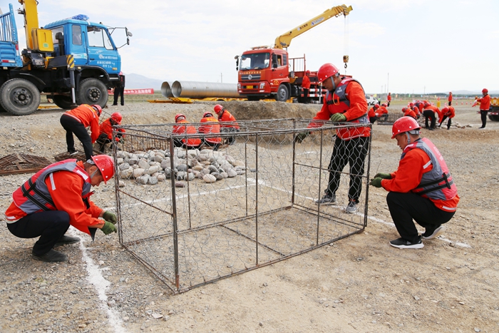 此次应急演练模拟持续强降雨引发洪水,导致路基受损,造成交通中断,道路通行受阻,重点围绕情况接报、应急响应、汛情研判、物资调运、设备调拨、处置水毁、恢复通行等科目开展。应急演练队伍分为抢险保通组、后勤保障组、安全保障组、通讯联络组,近60名应急抢险人员参加演练。演练中,抢险队伍各司其责,领导指挥有力,策划执行有力,后勤保障有力,技术支持准确可靠,应急物资调配合理,应急抢险措施得当。经过一小时的全力抢修,应急抢险队伍迅速高效完成了安装波纹管基座、吊装波纹涵管、回填砂土、涵洞进水口加固、路面平整等步骤,不仅使“水毁”道路得到精准高效修复,也使管养公路及时恢复安全畅通的良好运行状况。