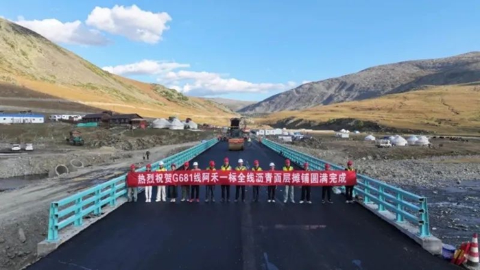 经过夜以继日的连续奋战,8月22日,随着K68+165-K68+746处最后一段沥青混合料摊铺完成,由新疆交通建设集团股份有限公司子公司新疆基础设施建设股份有限公司承建的G681阿禾一标圆满完成全线沥青路面施工任务,项目取得了阶段突破性进展。
