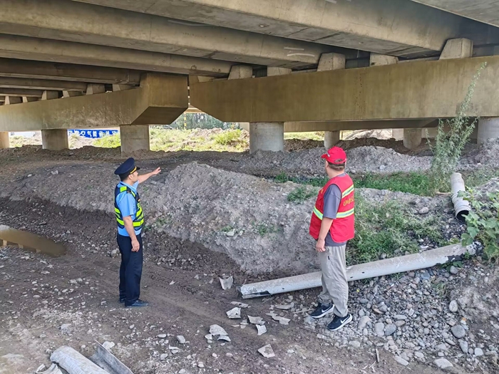 大队联合察布查尔公路分局对辖区重点路段沿线边坡、路基、桥梁等关键部位进行排查,重点查看路基边坡土壤是否松动、坡上植被是否倾倒、边坡及桥梁排水系统是否畅通等,确保排水畅通,无积水、无塌方等情况。