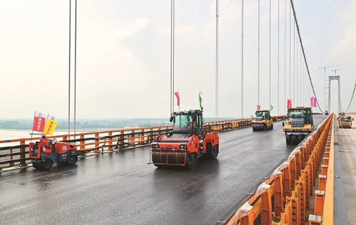 【新华日报】南京龙潭长江大桥主桥钢桥面开始沥青摊铺