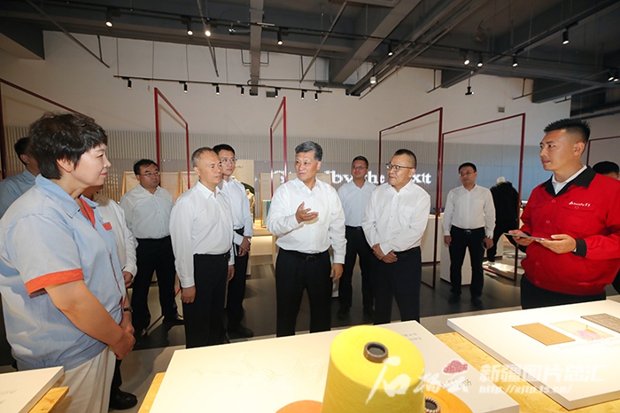 8月31日,自治区党委书记马兴瑞在阿克苏地区调研。这是马兴瑞来到阿克苏华孚色纺有限公司,同企业负责人交流,详细询问产业布局、经营发展状况。石榴云/新疆日报记者 崔志坚摄